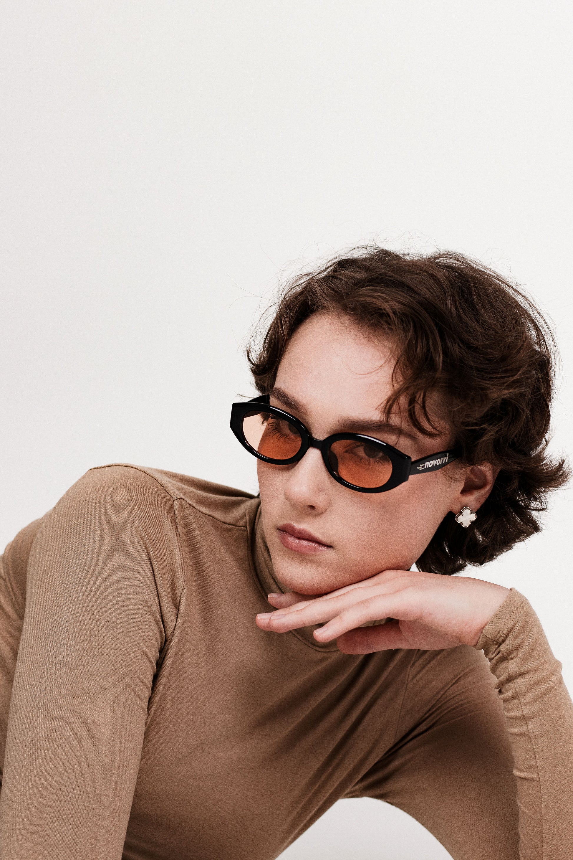 Frame: Black | Lens: Amber Gold | Shape: Minimalist Oval Cat-Eye
